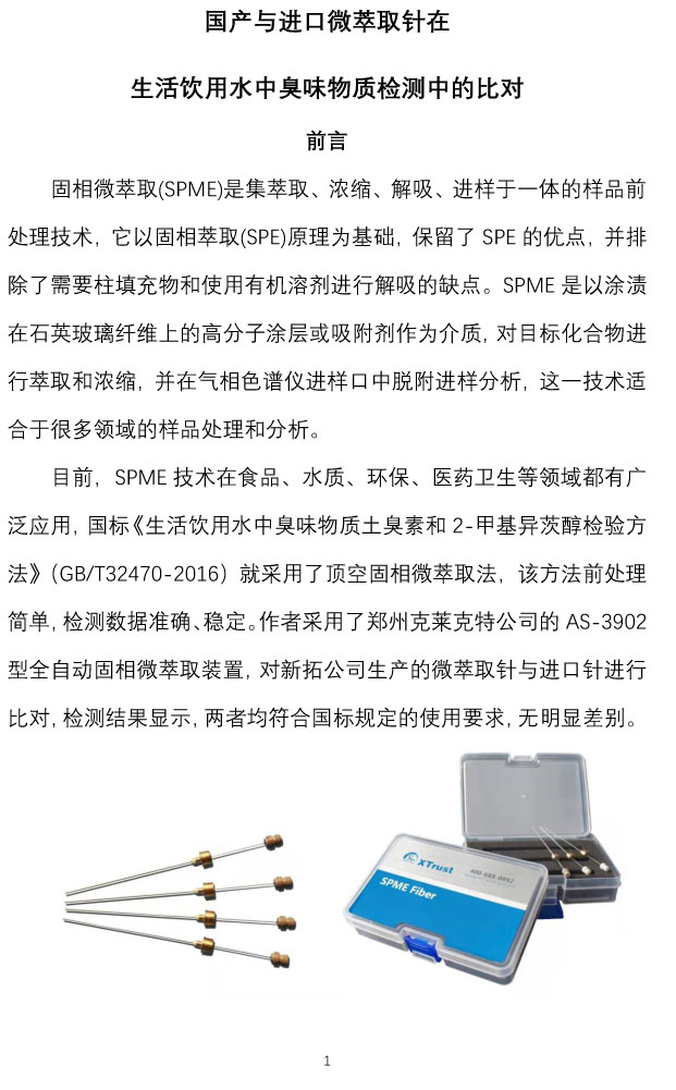 国产与进口微萃取针在生活饮用水中臭味物质检测中的比对